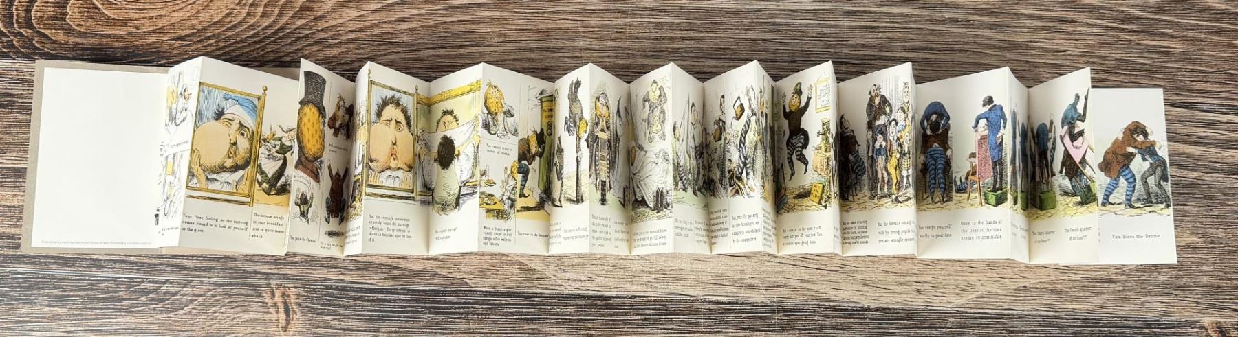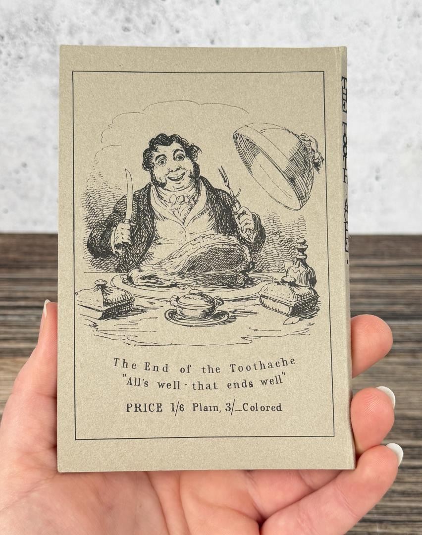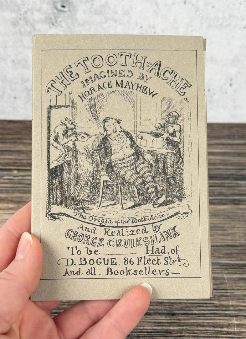 The book features 45 scenes illustrating the imaginary causes and pains of a toothache. The text was written by 19th-century journalist Horace Mayhew and illustrated by artist George Cruikshank.