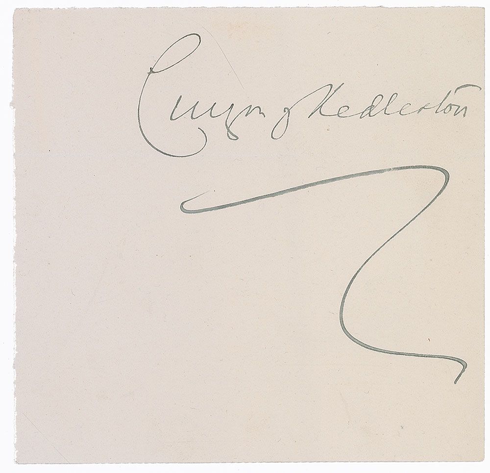 British Conservative statesman (1859–1925) who was viceroy of India and foreign secretary. Ink signature, “Cuzon of Kedleston,” on an off-white 4.5 x 4.5 album page. In fine condition.