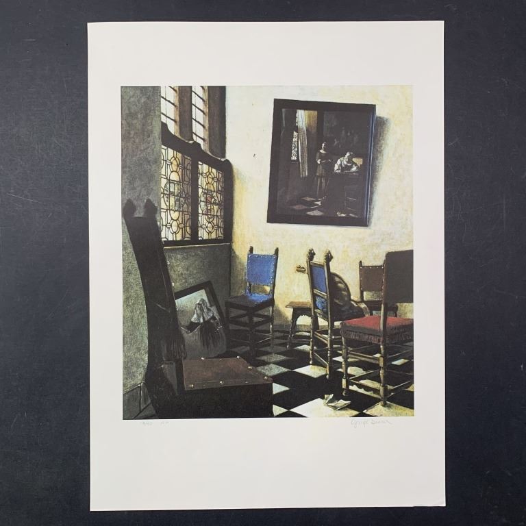George Deem, Untitled, Limited Edition Print. This room is now storage but judging by the painting which adorns the wall, this room used to be so much more. This piece is signed in the lower right and numbered 13/40 AP in the lower left. It is in excellent condition.