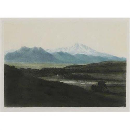 7704 George Elburt Burr (1859-1939) Colored Etching "Longs Peak" No. 65 Pencil signed lower left 6 3/4" x 9 3/4"