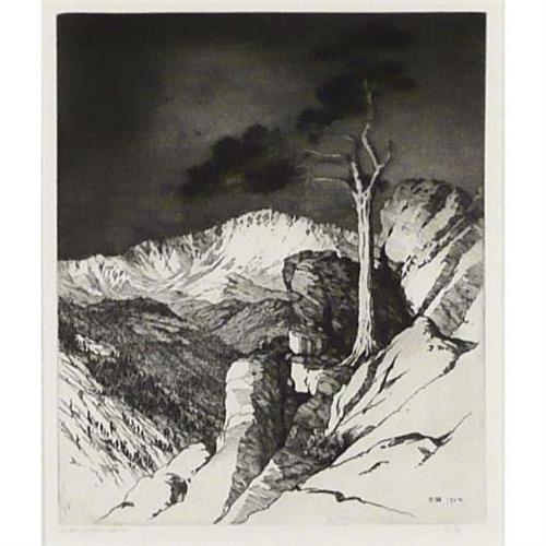 5906 George Elbert Burr (1859-1939) Etching "Pikes Peak, Colo" *8/50, 1922 Pencil signed lower left 11 1/2" x 9 3/4"