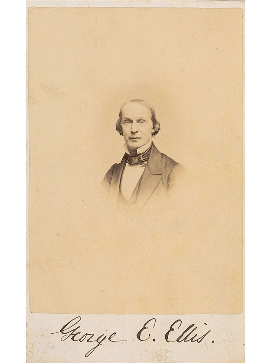 Unitarian clergyman and historian (1814–1894). Original 2.5 x 4.25 carte-de-visite bust portrait by an anonymous studio, signed in the lower border in black ink. Light scattered soiling and a skinned back, otherwise fine condition.