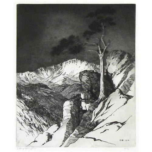 George Elbert Burr (1859-1939) Aquatint Etching, "Pikes Peak, Colo.", #8/50, 1922, image size 11 1/2" x 9 3/4", pencil signed