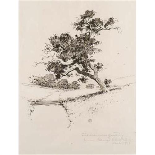 George Elbert Burr (1859-1939) Etching, "Santa Barbara Rd.",5 1/2" x 4 1/4", Inscribed: "The Seasons Greetings from George Elbert Burr Dec 1913" pencil signed. Provenance: Iron Eyes Cody Estate.