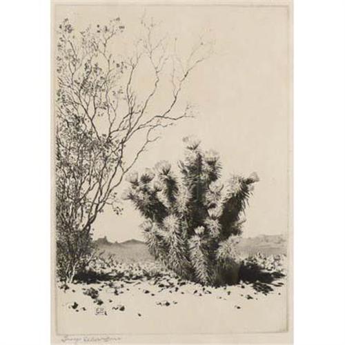 George Elbert Burr (1859-1939) Etching, "Cucumber Cactus.", 7 1/4" x 5", Pencil signed lower left. Provenance: Iron Eyes Cody Estate.
