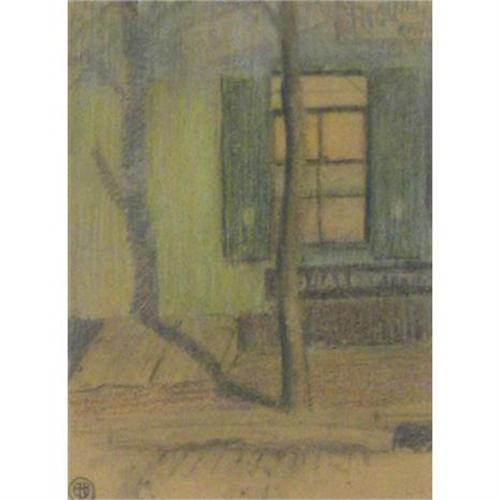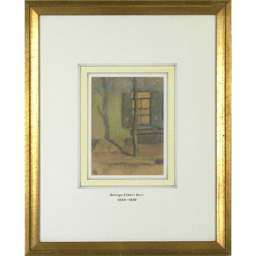 George Elbert Burr (1859-1939) Pastel, Exterior with Tree, 7 1/2" x 5 3/8", Burr logo lower left, circa 1915