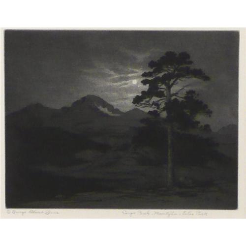 George Elburt Burr (1859-1939), Etching, "Long's Peak, Moonlight from the Moutain moods series, Seeber #169, 6 1/4" x 8 1/4", Pencil signed lower left.