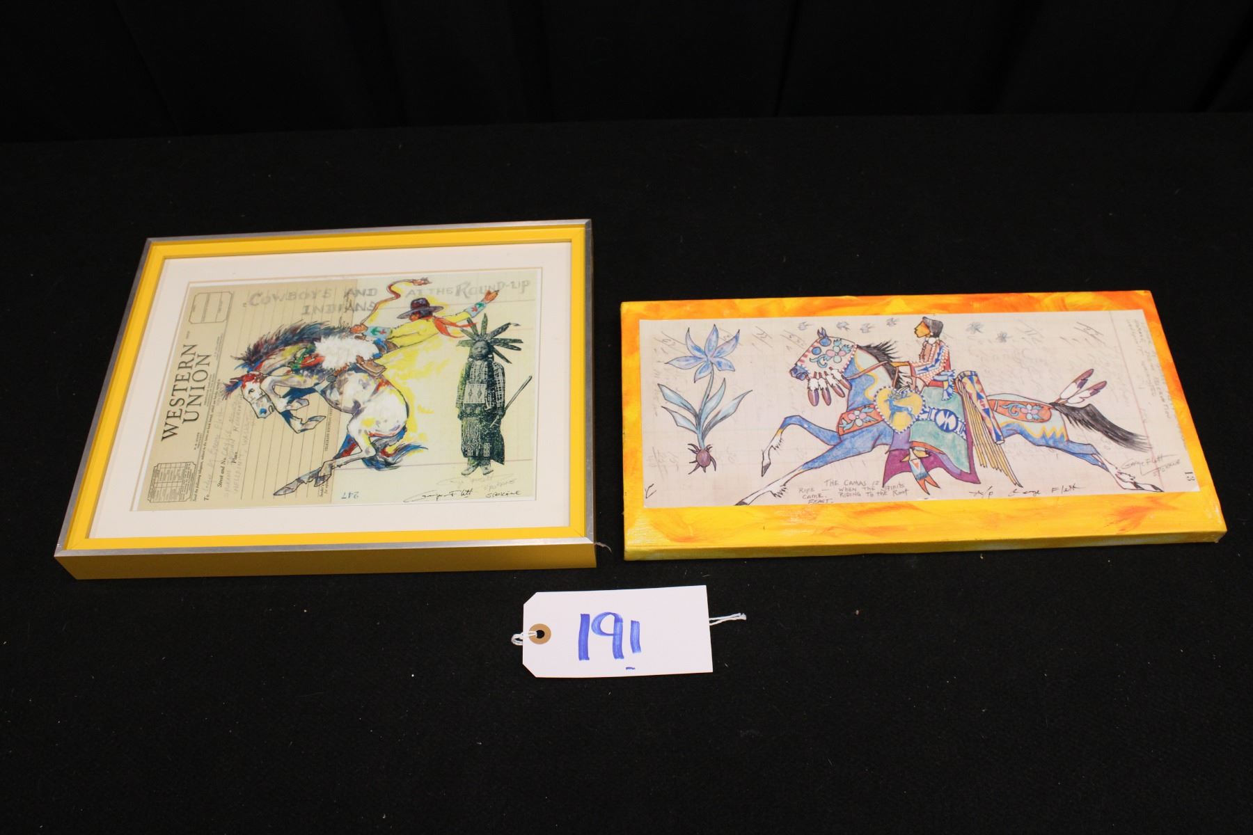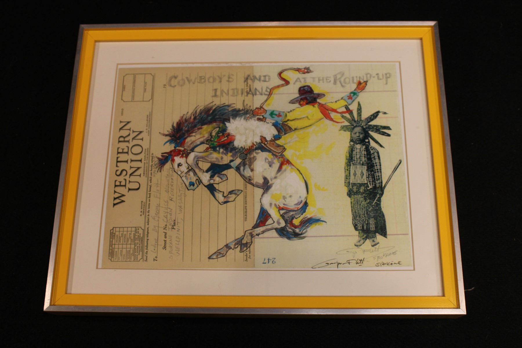 Lot of Artists Proof of "Camas Flower" 8" x 16" Overall; image (6" x 15") and signed, unnumbered print of "Cowboys and Indians at the Round-Up" 11.25" x 14". Overall; image 8" x 11".