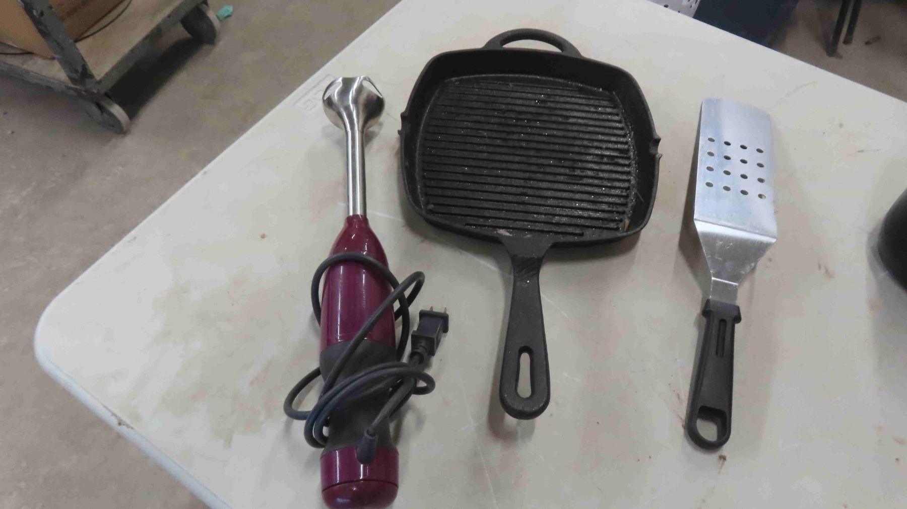 George Foreman Griddle , Hamilton Beach Blender, Kitchenaid Mixer, Cast Fry Pan