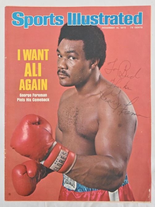 Signed "To Bud Thanks George Foreman". December 16, 1975 signed cover along with complete unsigned issue of same month. The article was written by George Foreman and Bud Shrake. From the personal collection of Bud Shrake