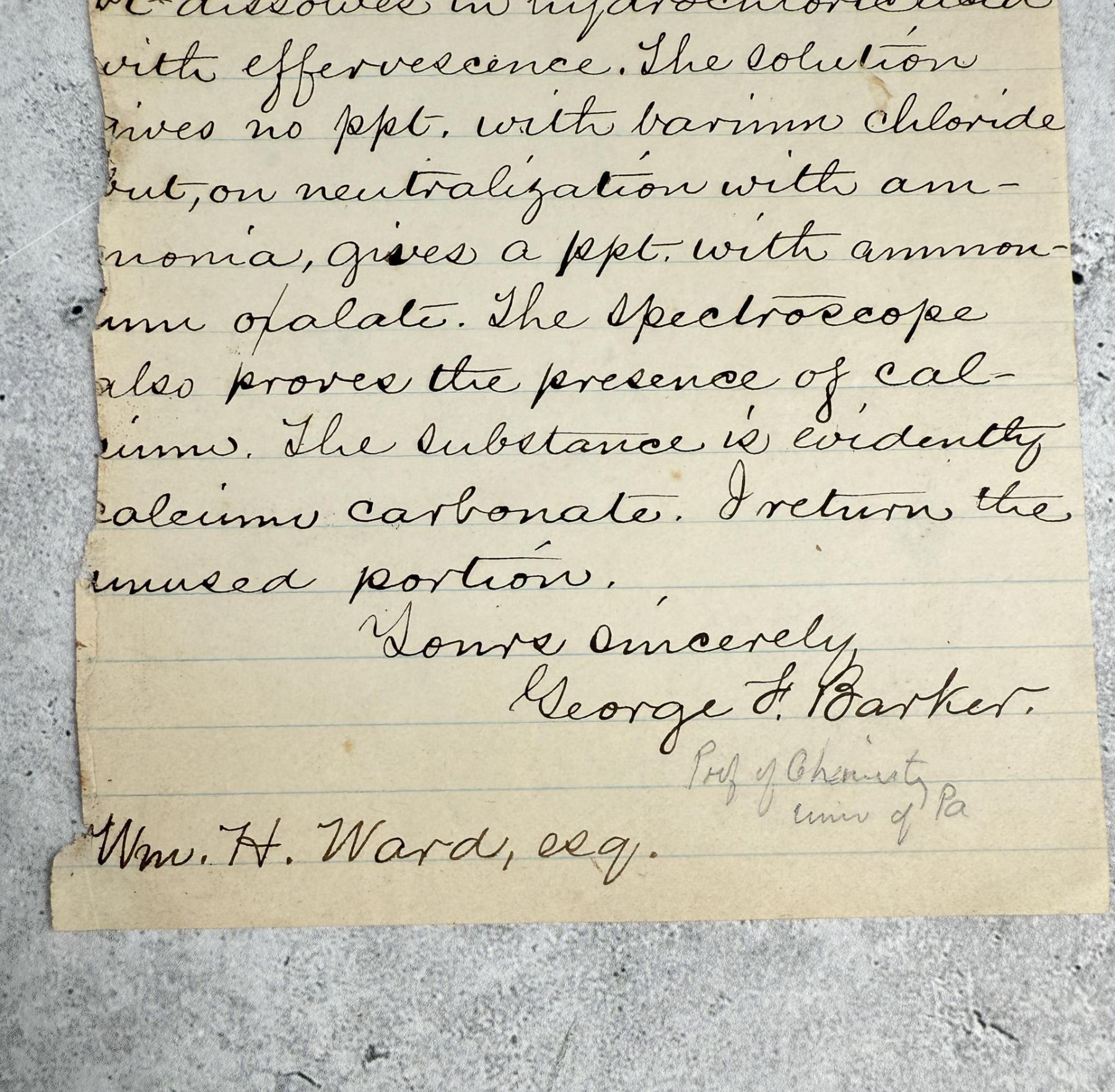 George Frederick Barker (July 14, 1835, in Charlestown, Massachusetts– May 24, 1910) was an American physician and scientist. He graduated from the Yale Scientific School in 1858. He was successively chemical assistant in Harvard Medical School in 1858–1859 and 1860–1861, professor of chemistry and geology in Wheaton (Ill.) College. In 1864 he became the Professor of Natural Science at the Western University of Pennsylvania, now known as the University of Pittsburgh, where he undertook experiments to produce electric light by passing the current through a resisting filament which he claimed was "the first steady electric light generated in Pittsburgh, if not in the country". He subsequently went to Yale as a professor of physiological chemistry and toxicology, and later was a professor of physics at the University of Pennsylvania, in 1879–1900, when he became emeritus professor. He served as president of the American Association for the Advancement of Science in 1879; president of the American Chemical Society; vice-president of the American Philosophical Society (elected 1873) for 10 years; a member of the United States Electrical Commission; and for several years an associate editor of the American Journal of Science. He lectured in many cities and wrote a Text-Book of Elementary Chemistry (1870); a Physics (1892); and more. In a history of the University of Pennsylvania published upon its bicentennial in 1940, the historian Edward Potts Cheyney recalled the piecemeal entry of women into the university, initially as auditors only, and noted, as Cheyney himself witnessed, that "in the lectures on physics in 1881 two young women sat meekly in a distant corner while Professor Barker was describing the new inventions of the electric light and telephone.