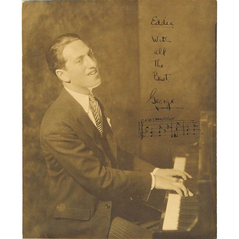Below the signature, Gershwin has written some musical notation, "A la Charleston". The treble clef piano piece is an exceptional feature of this item.