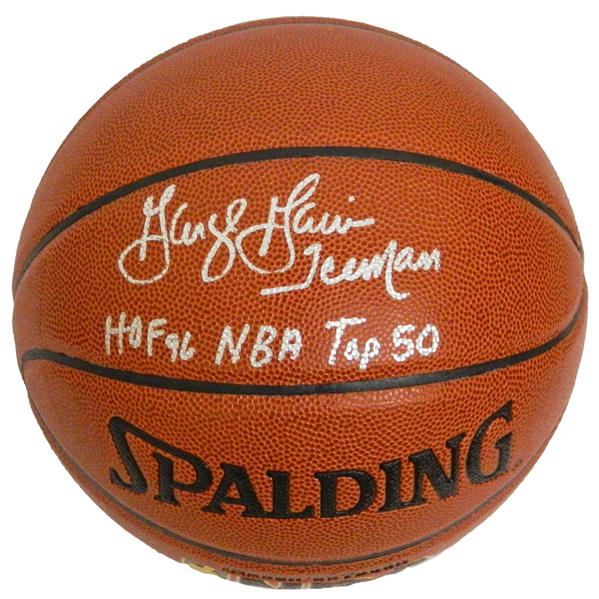 George Gervin signed Spalding NBA Indoor/Outdoor basketball with 'HOF 96, Iceman, NBA Top 50' inscriptions. Item comes with a Schwartz Sports Memorabilia tamper-proof numbered hologram and Certificate of Authenticity which can be verified online.