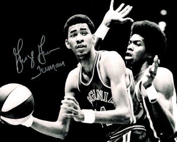 Gervin initially played for the Pontiac (Michigan) Chaparrals of the Eastern Basketball Association, where he was spotted by Johnny Kerr, a scout for the Virginia Squires of the ABA. Kerr signed Gervin to the Squires for a $40,000 a year contract. George Gervin has hand signed this Virginia Squires 8x10 Vintage B&W Photo with Iceman inscription. Schwartz Sports Hologram and Certificate of Authenticity from Athlon Sports.