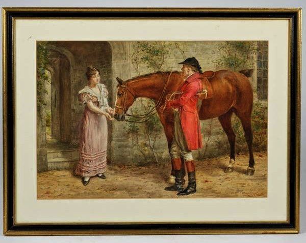 George Goodwin Kilburne (1839-1924, British), painting, Returning from the hunt, watercolour on paper, signed "G.G. Kilburne", lower right, 13.75" x 20"