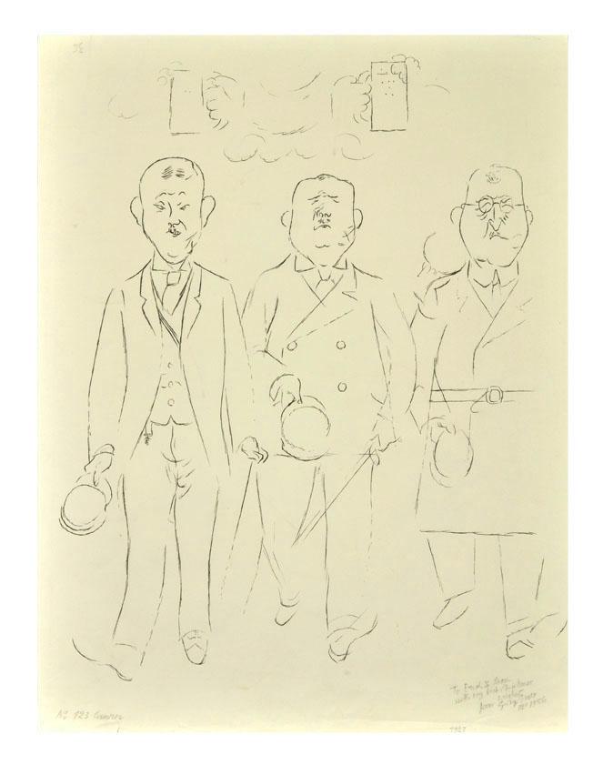Signature: Signed lower right and dated 1927; inscribed "Erich & Lena with my best Chistmas wishes, from George Grosz, Dec 1956"