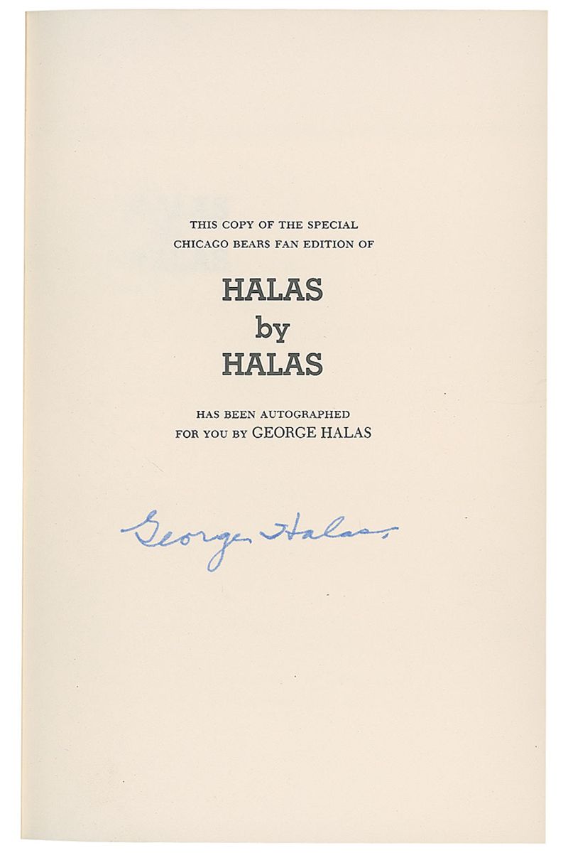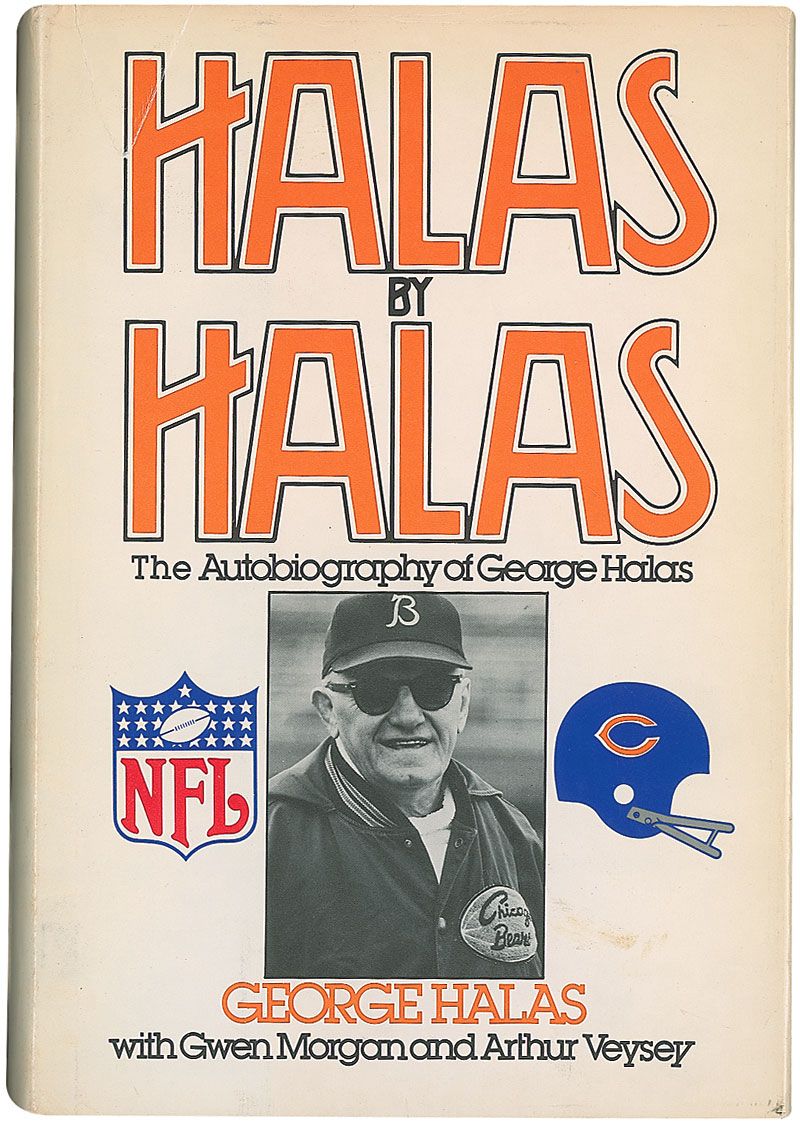 Signed book: Halas by Halas. Chicago Bears Fan edition. NY: McGraw-Hill, 1979. Hardcover with dust jacket, 6.25 x 9.25, 351 pages. Signed on the colophon in blue ink. In fine condition, with scattered light wear and creasing to dust jacket.