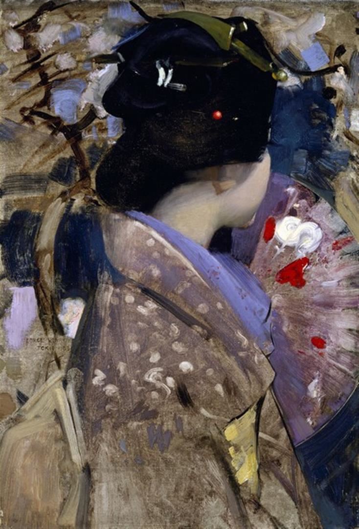 Artist: George Hardy - Title: Japanese Lay with Fan - Medium: Fine Art Reproduction Giclee on Canvas - Image Size: Approximately 20 inches x 13.5 inches - Unframed on Unstretched Canvas - Biography: Hardy's paintings of cottage interiors reflect the influence of Thomas Webster and Dutch genre painters of the seventeenth century, as can be seen for example in The Leisure Hour (1855). During the 1850s George Hardy helped his younger brother Frederick Daniel, in particular to improve his painting of human figures. They collaborated on a few paintings.