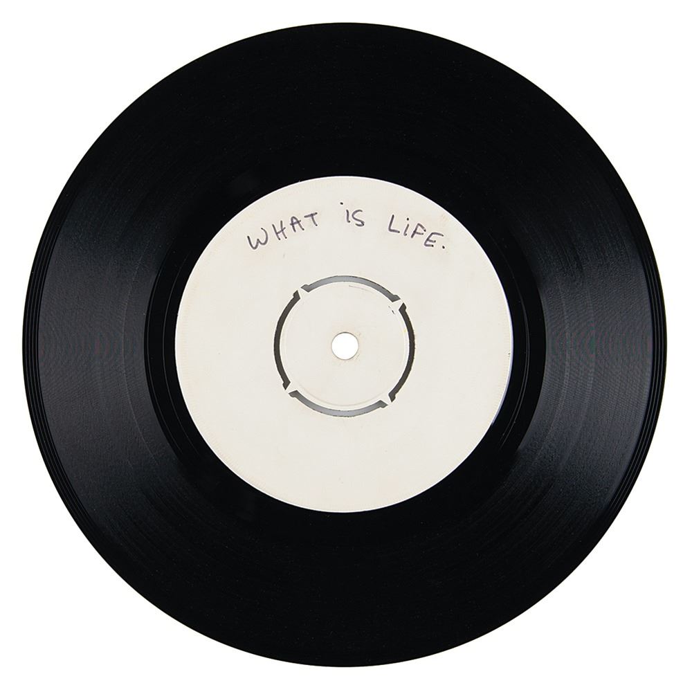 Accompanied by a certificate of authenticity from Tracks and by a letter of provenance from the original recipient, John Glazbrook: “In 1971, I worked in a garage that rectified faults on what are now known as classic cars. In March of that year a Mini Cooper "S" came in that had a lot of very strange drawings painted on the body. The driver of the car was none other than Klaus Voormann, who was a friend and session bass player for George Harrison. Indeed, the Mini was George Harrison’s personal car. Klaus explained to me that the car had no power and left it with us to be repaired…On completion of the work the car stayed with the garage for two weeks. I was asked to deliver the car back to Friar Park, George Harrison’s home in Henley-on-Thames. This was at the end of March 1971. Upon entering the grounds through a large electric gate, I saw George Harrison driving a dumper truck. He was doing some groundwork to his garden at the front of the house. I drove the car up to the front of the house and George came over to speak to me. I explained to him what the fault was, and what I had done to rectify it. He thanked me for the work I had done. I then asked him if he would mind giving me his autograph. He asked me into the house and gave me a plain white labelled record, which he signed in front of me…He also wrote the song titles, ‘MY SWEET LORD’ on the front, and ‘WHAT IS LIFE’ on the back. That was the one and only time that I met George Harrison.”