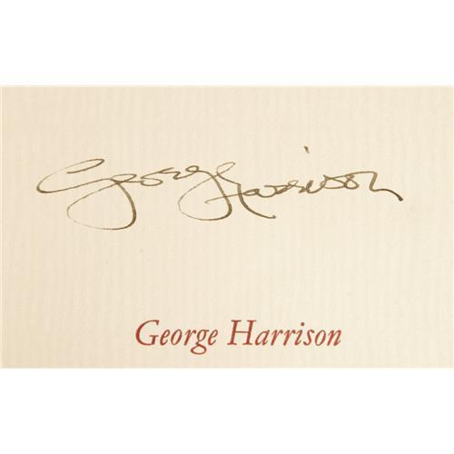 <B>George Harrison Signed Copy of "I Me Mine."</B></I> A gorgeous, first-edition copy of George Harrison's book, #429 in a limited edition, signed by Harrison in black ink on the limitation page. Published in 1980, the leather-bound volume with slipcase reproduces in facsimile the lyrics of 83 of Harrison's compositions together with the story behind each song, and is illustrated throughout with photographs. In Excellent condition.<I>Accompanied by LOA from PSA/DNA.</B></I><BR><BR><b>Shipping:</b> Books & Catalogs (<a target="_blank" href="http://www.heritageauctions.com/common/shipping.php">view shipping information</a>)