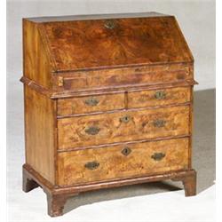 George I Burl Walnut Slant-Front Bureau