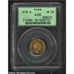 George I Gold 10 Drachmai 1876A, KM48, AU58 PCGS. A choice example that has claims to a higher grade