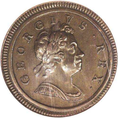 George I Halfpenny 1717, S-3659, Proof 63 Brown NGC. Th