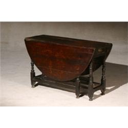 George II-III Oak Drop-Leaf Gate-Leg Table, Circa 1750-1760, Each skirt end fitted with a dra...