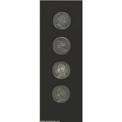George II Shillings (2) 1743 and 1745 Lima, KM583, F-VF and Toned VF-XF, plus Shillings of William III 1697 Fine and Anne 1711 AVF, few surface marks. 4 coins Important notice: We expect to be auctioning lots at the rate of 200-250 per hour. Sometimes eBay Premier live bid software cannot keep up with that pace, so we strongly recommend that you place a realistic proxy bid now as insurance to avoid disappointment. Also please note that all Heritage/CAA lots purchased through eBay Premier carry a 20% Buyer's Premium. Please make sure you read the Terms and Conditions.