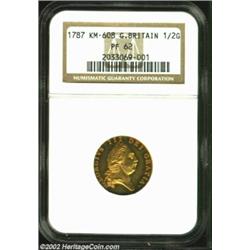 George III 1/2 Guinea 1787, KM608, PR62 NGC, this rare proof striking is intricately detailed with l