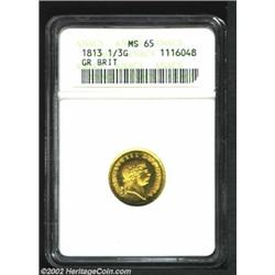 George III Gold 1/3 Guinea 1813, KM650, MS65 ANACS, scarcer final year of denomination. Important no