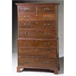 George III Mahogany Chest-on-Chest, Circa 1770-1790, Brasses appear to be original. Repairs t...