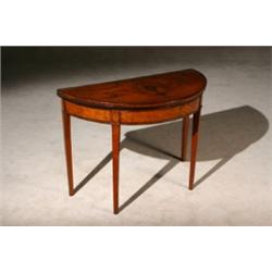 George III Marquetry Satinwood Demilune Fold-Top Games Table