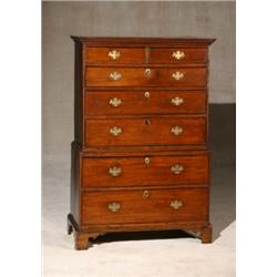 George III Oak Chest-on-Chest, Circa 1770-1790, Brasses replaced; some drawer fronts warped;...
