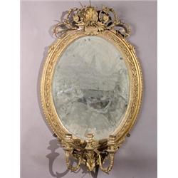 George III Style Giltwood and Gesso Three-Light Girandole Mirror