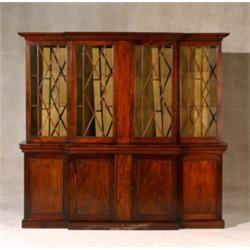 George III Style Mahogany Breakfront Bookcase-Cabinet