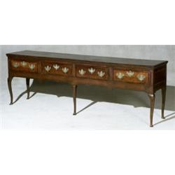 George III Walnut Crossbanded Oak Welsh Dresser Base, Mid-18th Century, Rear of top board pat...
