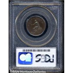 George III bronzed copper Proof Farthing 1806, S-3782. PR64 BN PCGS. A bit dull but certainly choice.From the Craig Haller Collection. Important notice: Heritage usually auctions material at the rate of 200-250 lots per hour. On some occasions eBay Live bid software or the Internet may not be able to keep up with the pace of the auction. We recommend placing a realistic absentee bid now as insurance to avoid disappointment. Occasionally the auctioneer may eliminate or reject an eBay Live bid, and the auctioneer may also reopen a lot after the close of the eBay live bidding (usually because we missed an audience bid), and may reject your bid even if it shows you as the winning bidder. By bidding via eBay Live, you agree that Heritage may award the lot to another bidder at its sole discretion under the circumstances described above or any other reasonable circumstances. Also please note that all Heritage lots purchased through eBay Live carry a 20% Buyer's Premium. Please make sure you read the Terms and Conditions before you bid.