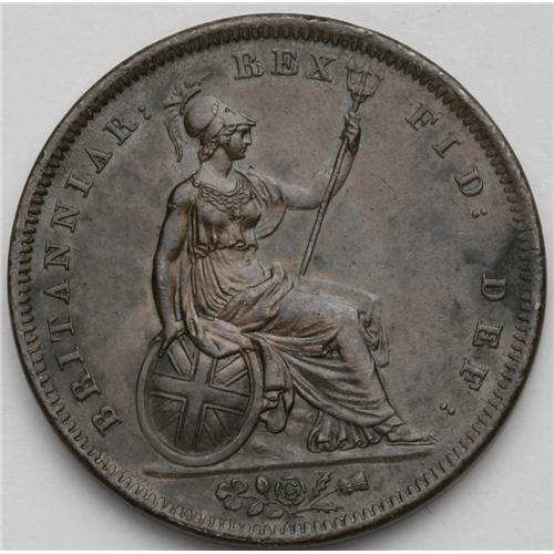 <B>George IV penny, 1826. </B></I>S-3823. Choice Uncirculated with an almost medallic strike and exceptionally pleasing mahogany-brown surfaces. This issue resembles ancient Roman sestertii, which were the copper penny's original inspiration, more than perhaps any other British coin.