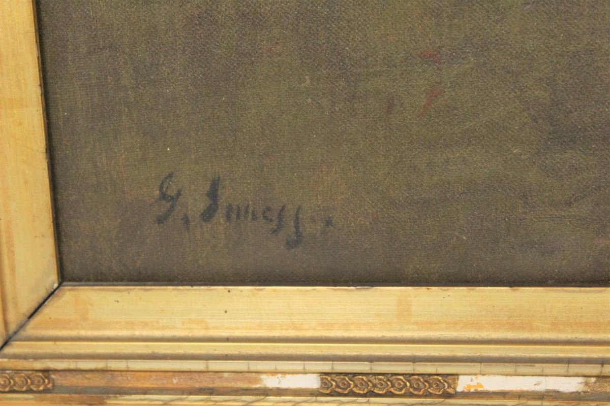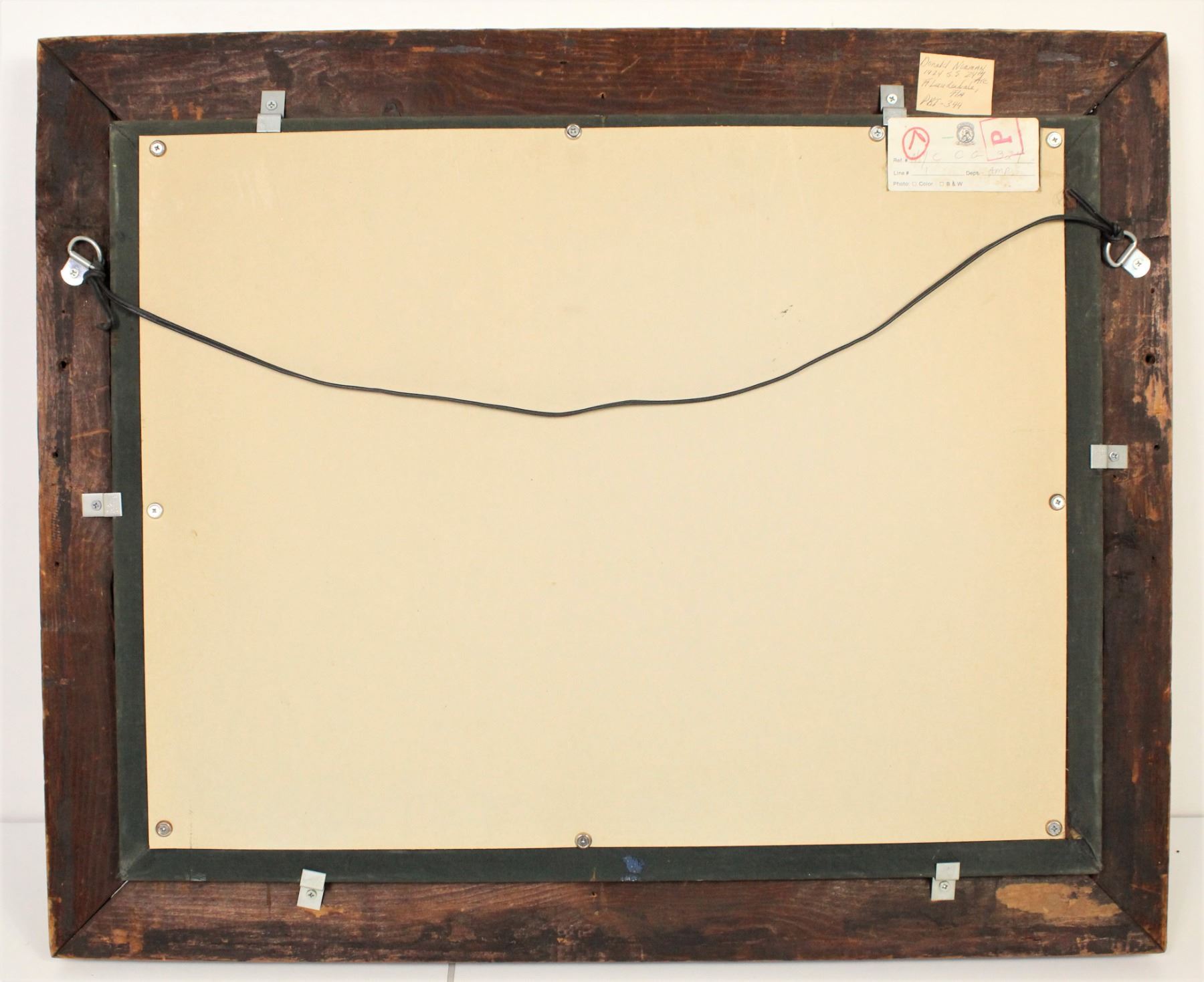 Ethereal landscape, with diffused light and softly defined forms. Signed lower left, oil on canvas, in restored condition. Provenance: Christie's label verso.