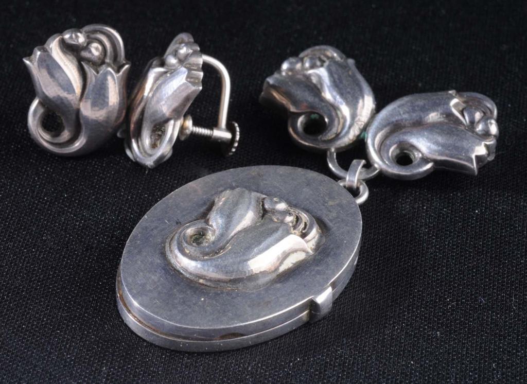 Description Marked "100X6 Sterling Denmark". Screw-back earrings with locket on pin that opens to reveal two sides to place pictures. Condition (Excellent). Size Locket: 1 - 1/2" L.