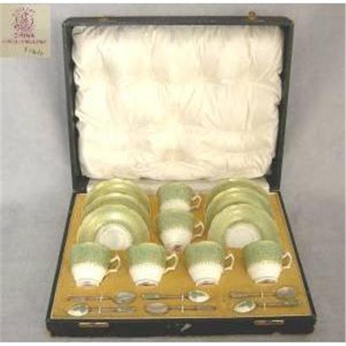 George Jones 18 Piece Coffee Set with silver enamelled Spoons.