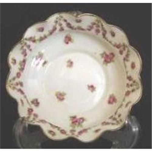 <p> Hand painted with swags of pink roses . fluted edge gilded