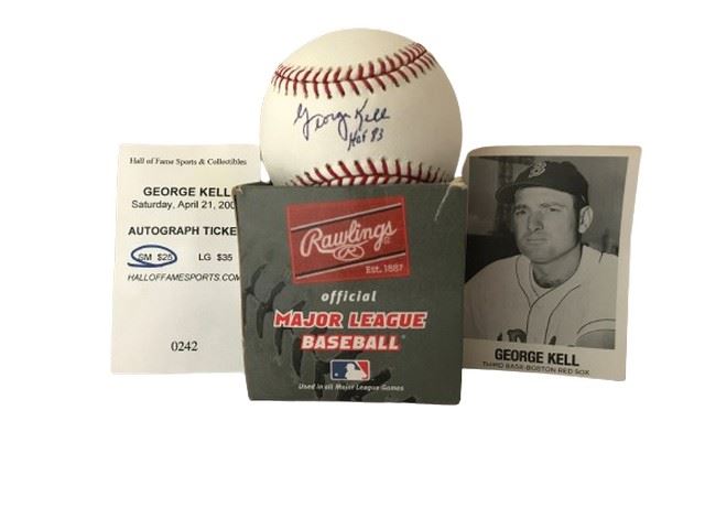 George Kell Signed Baseball, Trading Card and Signed Ticket