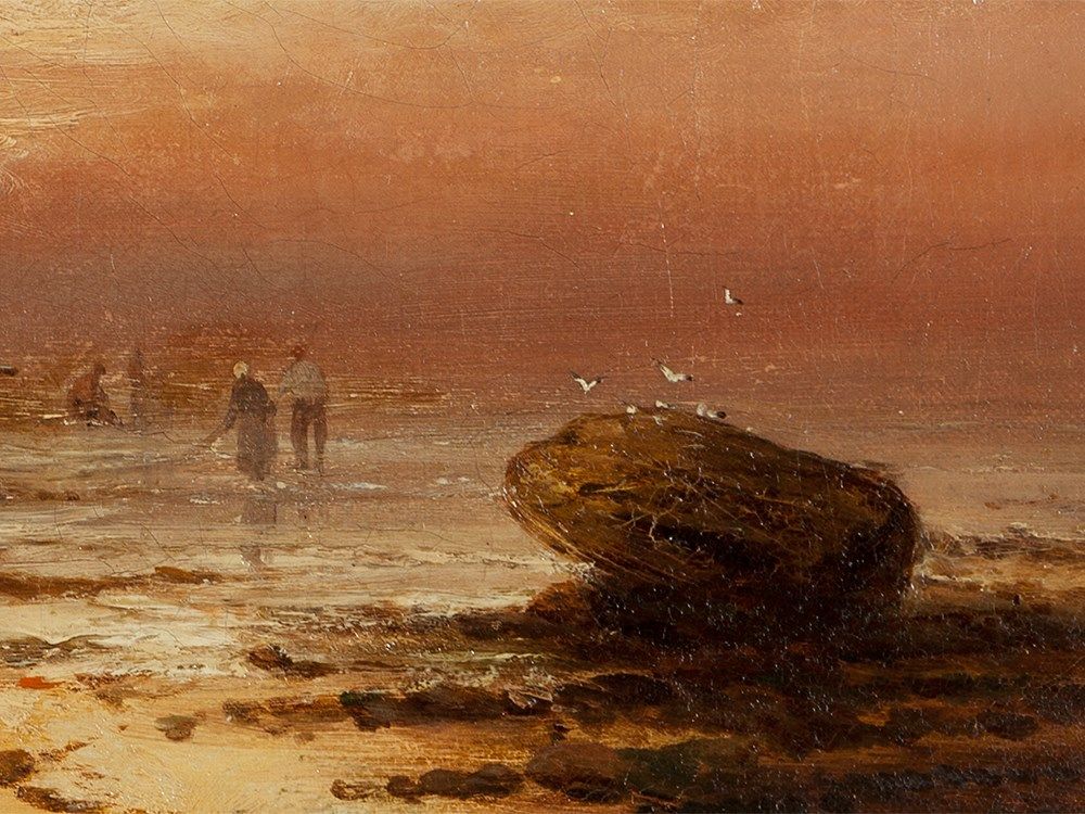 British painter George Knight was active in the period from 1872 to 1892. His works deal mainly with maritime subjects such as ships and fishermen at work. (lvp)