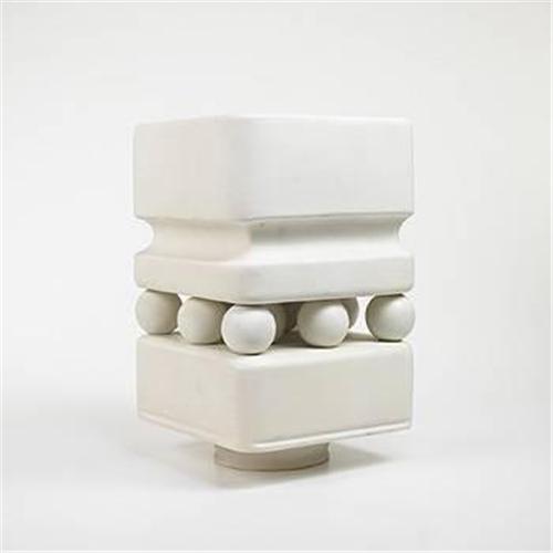 George Lanteri<BR>vase<BR>France, c. 1965<BR>bisque porcelain<BR>10.5"w x 10.5 "d x 17"h<BR>Two interchangeable components can be stacked together or utilized separately.<BR><BR><BR><BR><BR><BR>