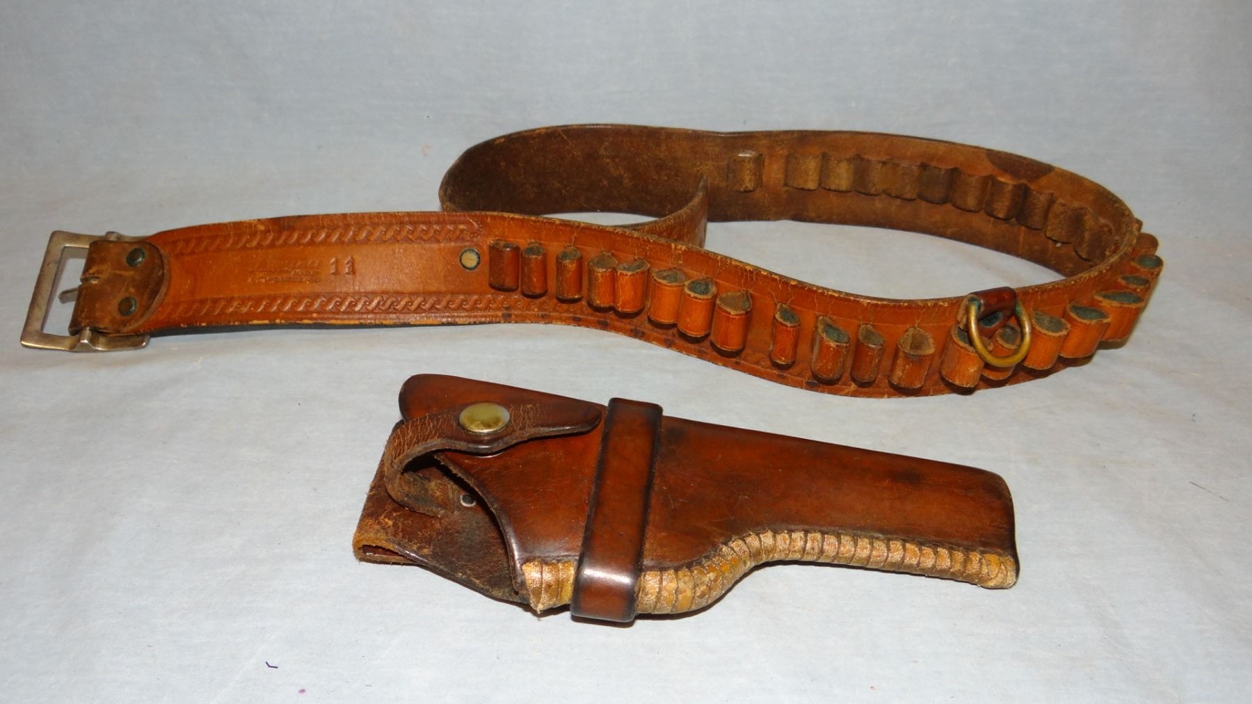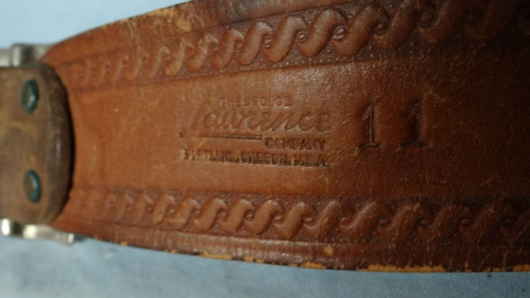 George Lawrence .30-06 ammo belt and 4 1/2" holster and shoulder holster, all marked