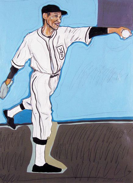 Canadian [b. 1958] JIMMY RATTLESNAKE, ALBERTA; 1988 mixed media on paper 29.25 x 21.5 in. (74.3 x 54.6 cm) signed, titled & dated Note: This lot is accompanied by the book "To Run with Longboat, Twelve Stories of Indian Athletes in Canada" (Zeman). It was created for this book and is illustrated on p. 21, with the story following.