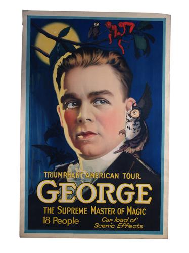 George Magician Poster with Owl & Devils 27 x 40  Otis Litho. Co. Cleveland , OH