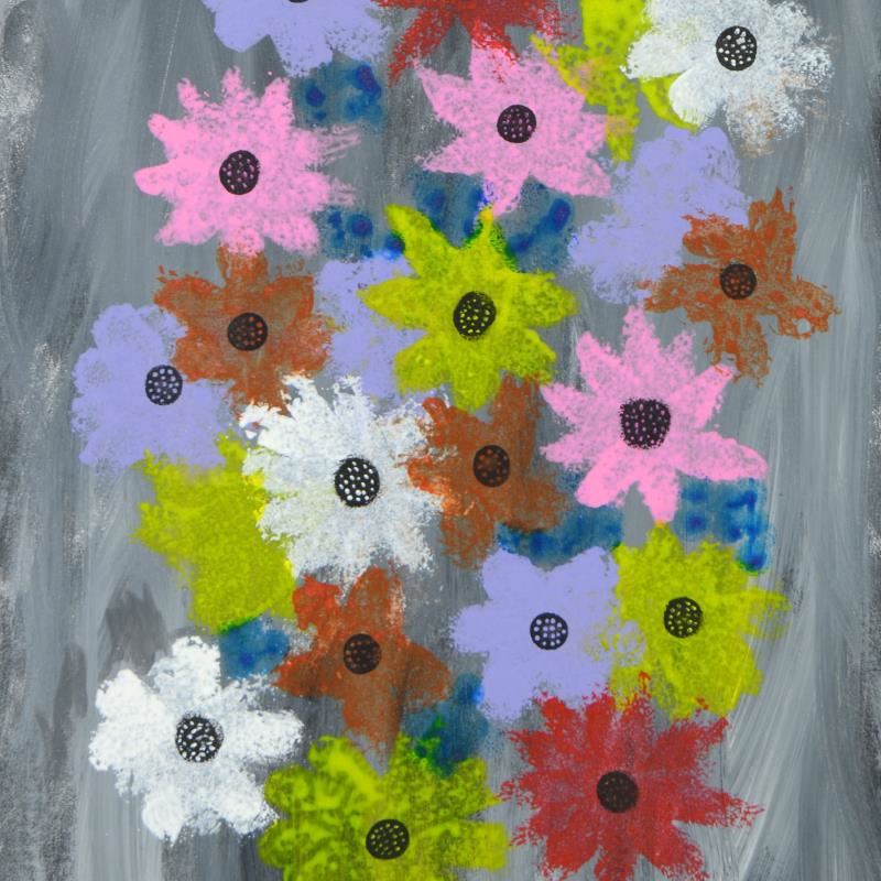 "Bouquet" is an original acrylic painting on stretched canvas by George Marlowe, hand signed by the artist. Includes Certificate of Authenticity. Measures approx. 20" x 30" (image).
